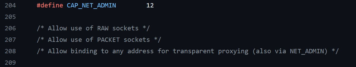 CAP_NET_ADMIN | 12 | ネットワーク設定を変更できる |