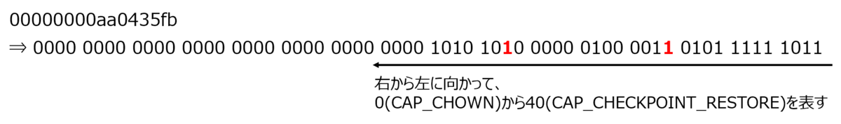 NET_ADMINとSYS_TIMEのビットがON(1)となっていることを確認します。