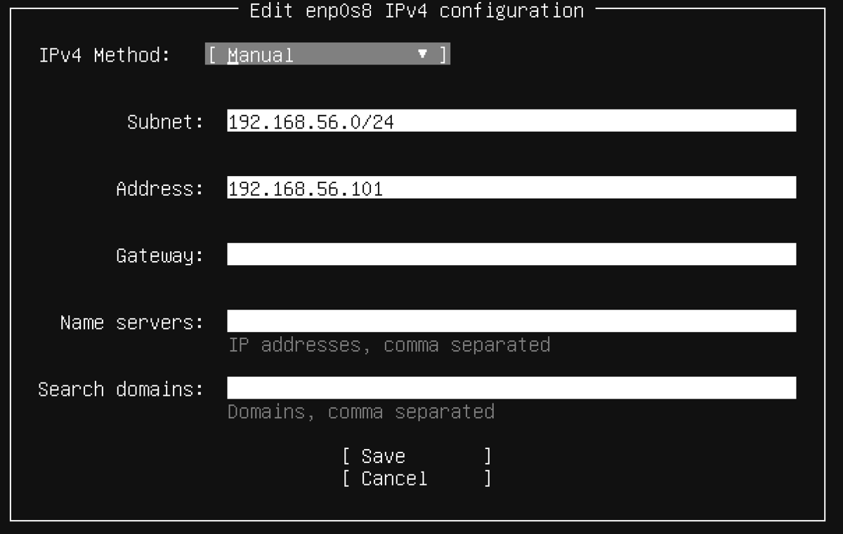 アダプター2は内部用(ホストオンリーアダプター、固定IPアドレス)としました。